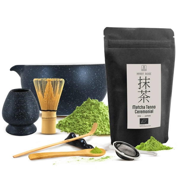 Set cerimoniale per preparare il tè matcha: matcha BIO giapponese 30g + accessori
