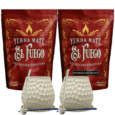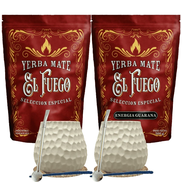 Set iniziale per due Yerba Mate El Fuego 2×500 g + 2× Zucca di Mate + 2× Bombilla