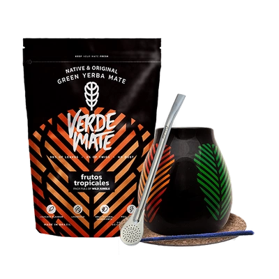 Set di Yerba Mate: Verde Mate Frutos Tropicales 500g + Tazza di mate + Bombilla
