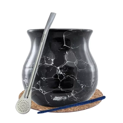 Yerba Mate Matero Set Calabash Marmol Bombilla