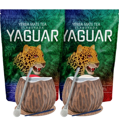 Yerba Mate Starter Kit per due Yaguar Naranja 500g + Yaguar Menta Limon 500g
