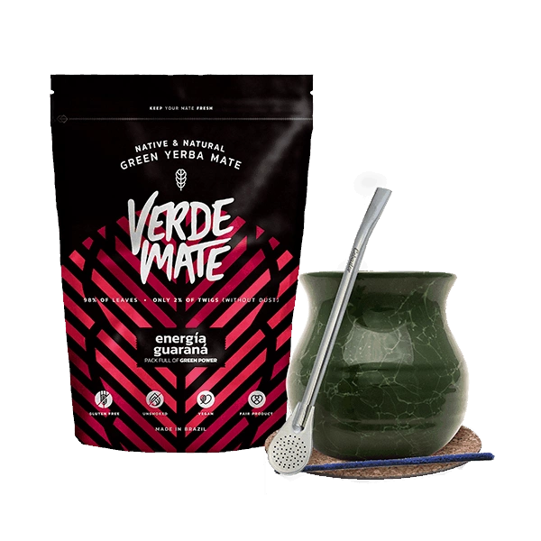 Set di Yerba Mate Verde Mate Energia Guarana 500g TermoMate + Bombilla