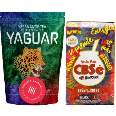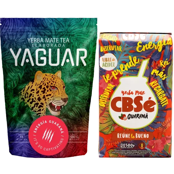 Set di Yerba Mate: Verde Mate Energía Guaraná 2x500g + Yerbera