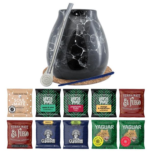 Yerba Mate Set 10x50g Calabash Marmol Bombilla