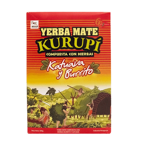 - Kurupi Katuava y Burrito 500 g è una yerba mate paraguaiana con l'aggiunta di corteccia di catuaba ed erbe burrito. L'aroma di erbe bilancia l'amarezza. Stimola perfettamente. Provate!