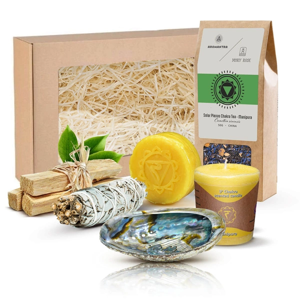 Set regalo per chakra ombelicale (Manipura): tè chakra + incenso + candela