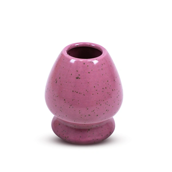 - Kusenaoshi "Beri" è un elegante supporto in ceramica progettato per contenere una frusta di bambù - chasen. Rifinito in una tonalità viola bacca, è un'aggiunta elegante e un elemento funzionale del rituale di preparazione del tè matcha.