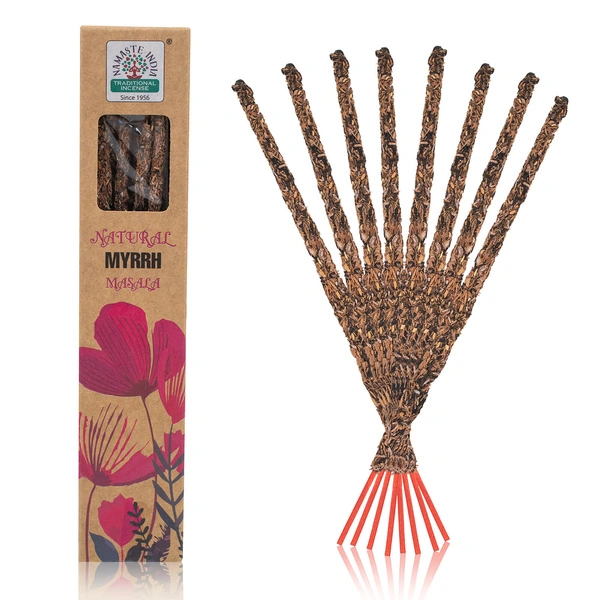- Namaste India Myrrh - bastoncini d'incenso naturali con una fragranza calda e resinosa di mirra. Realizzati a mano in India con ingredienti naturali. Perfetto per il rilassamento, la meditazione e la creazione di un'atmosfera tranquilla in casa.