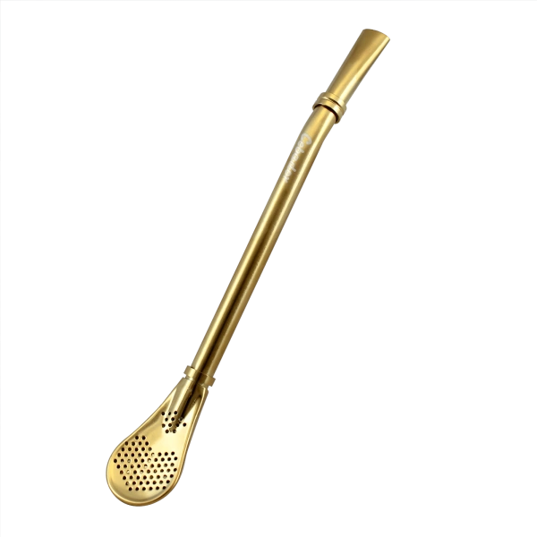 - Bombilla in acciaio inox, leggermente ricurva, lunga 15,5 cm, realizzata con cura. È dotata di un elemento filtrante a forma di colino. Un design così semplice permette di filtrare bene e di bere senza problemi.