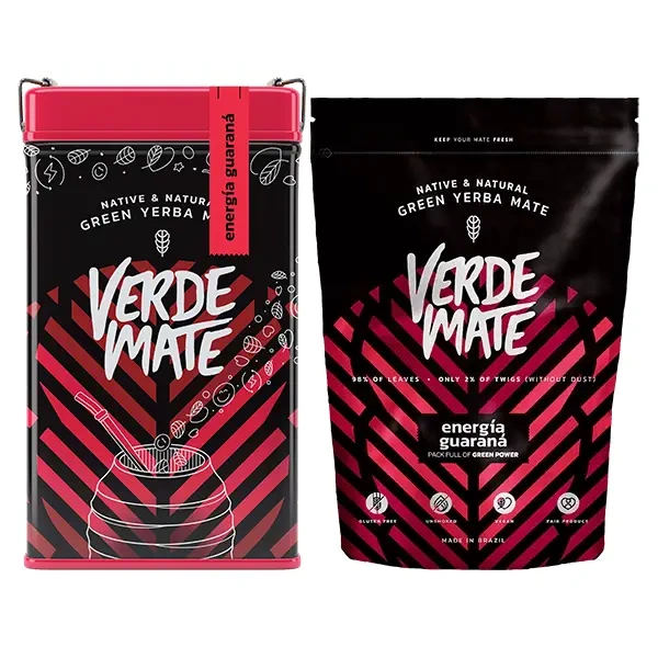 Set di Yerba Mate: Verde Mate Energía Guaraná 2x500g + Yerbera